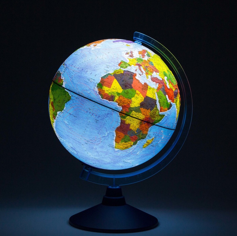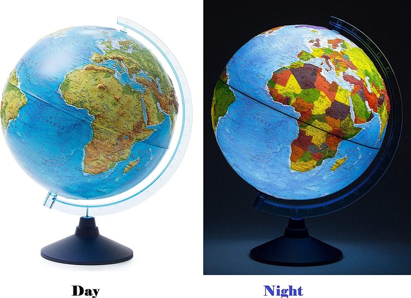 - Keď v tmavom prostredí zapnete LED svetlo, zemeguľa zmení svoju mapu, tj nakreslia sa politické hranice krajín sveta.