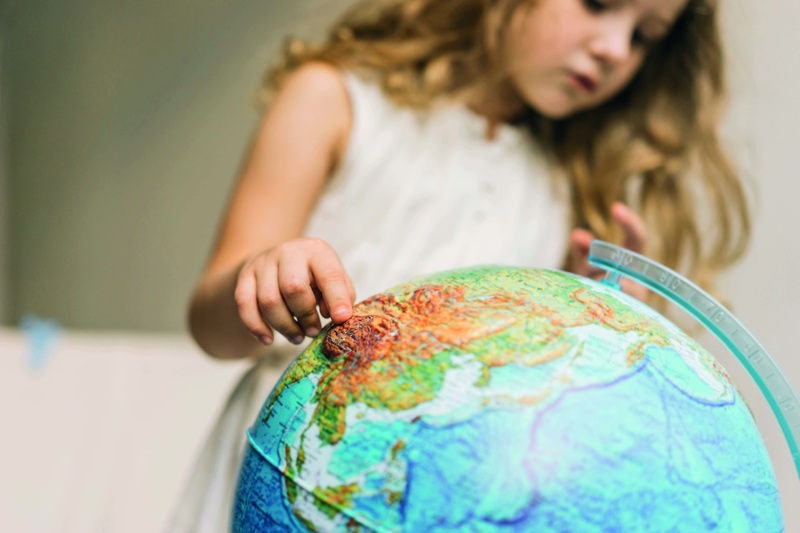Klasický glóbus s reliéfnym povrchom umožňuje vášmu dieťaťu vizuálne a taktne preskúmať geografickú štruktúru sveta.
