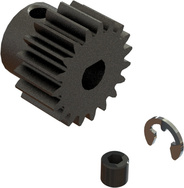 Tuningový diel pre RC modely áut Arrma 3S 4WD Bigrock, Granite, Senton, Typhon: pastorok 20T 0.8M Safe-D5. Otvor pre hriadeľ s plôškou v tvare D zaistí pevné spojenie aj keď sa uvoľní pastorok.