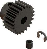 Tuningový diel pre RC modely áut Arrma 3S 4WD Bigrock, Granite, Senton, Typhon: pastorok 21T 0.8M Safe-D5. Otvor pre hriadeľ s plôškou v tvare D zaistí pevné spojenie aj keď sa uvoľní pastorok.
