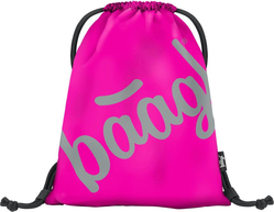 Vrecko na obuv vo výraznej ružovej farbe s logom Baagl, ktoré v tme svieti, zaťahovanie pomocou pevných šnúrok, ktoré zároveň umožňujú aj nosenie vrecka na chrbte