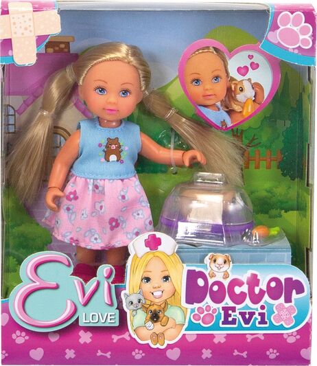 Bábika Evička Veterinárka s morčiatkom a príslušenstvom.Veľkosť bábiky je 12 cm.