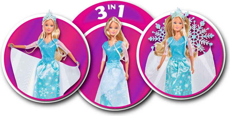 Bábika Steffi ako Ľadová princezná 3 v 1, s odnímateľnými časťami šiat.Veľkosť bábiky je 29 cm.