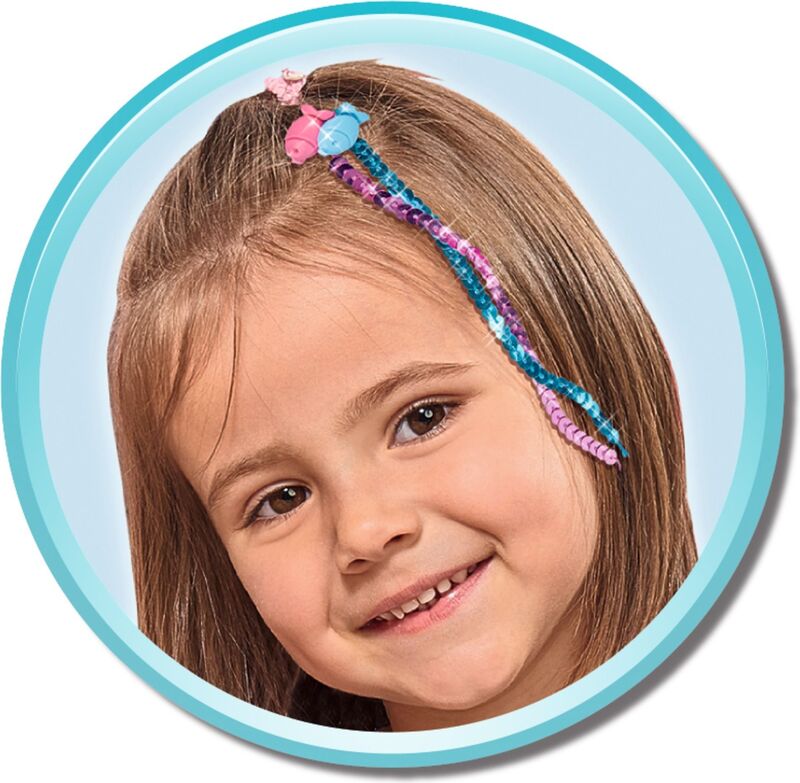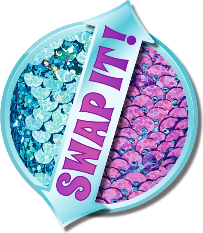 Bábika Steffi ako morská panna s dvomi pripínacími vlasovými prameňmi a s plutvou z farebných flitrov so swap efektom.