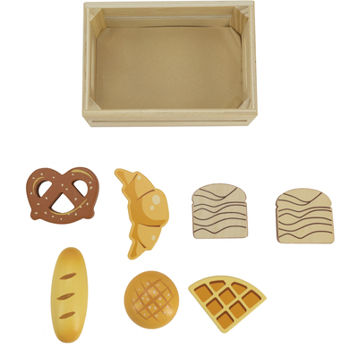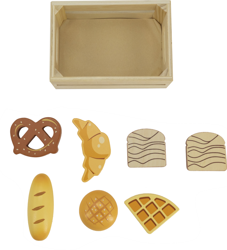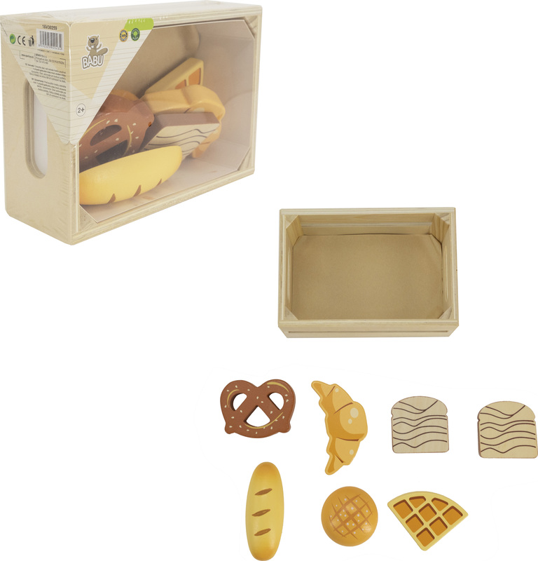 Úžasná drevená hračka - krabička plná čerstvých pekárenských výrobkov je fantastický prvok na hranie sa na obchod alebo varenie.Má dokonale prispôsobené tvary na uchopenie malými rúčkami, rozvíja pohybovú koordináciu, zdokonaľuje motoriku a rozvíja kreativitu.