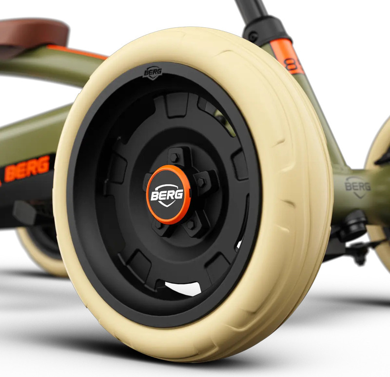 Štyri off-roadové kolesá a kyvná náprava udržujú BERG Buzzy pevne na zemi. Vďaka tomu si dieťa poradí s akýmkoľvek terénom.