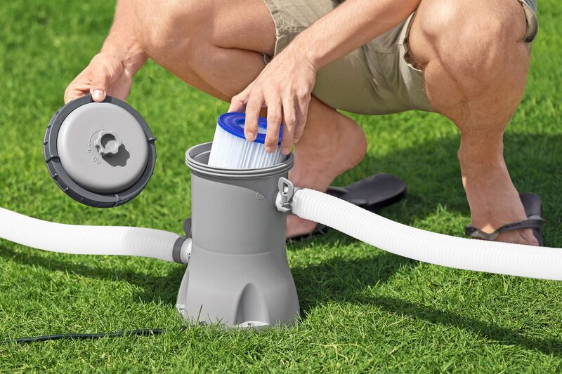 - Obsah balenia: Filtračné čerpadlo, filtračná kartuša (typ II), rebrík, krycia plachta, samolepiaca opravná záplata