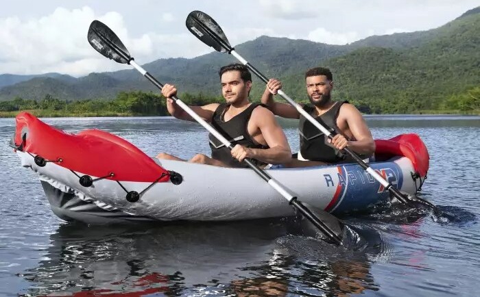 Ponorte sa do sveta vodných športov s kajakárskym setom Bestway® Hydro Force® Rapid™ X2. Tento kajak s pôsobivými rozmermi 321 x 100 x 44 cm ponúka dostatok priestoru pre dve dospelé osoby a maximálnu nosnosť 220 kg.