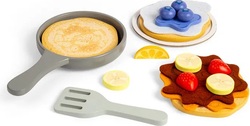 Sada obsahuje všetko, čo je potrebné na prípravu vynikajúcich palaciniek vrátane panvice a obracačky, čokoládovú a jogurtovú polevu, nakrájané banány, jahody a čučoriedky.