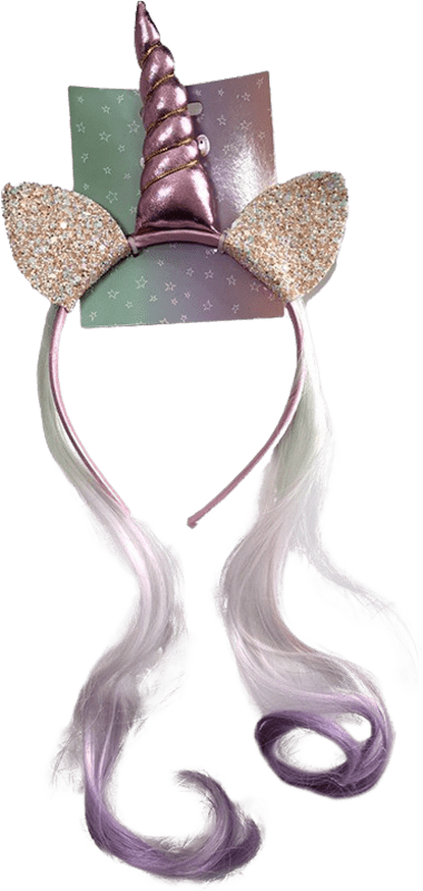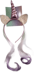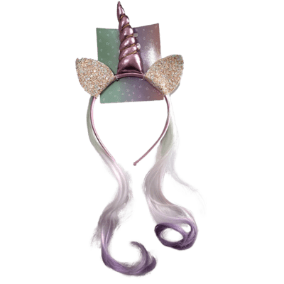 Senzačná karnevalová čelenka v štýle jednorožca! Biela čelenka s rohom so striebornými ušami, a dúhovým pramienkom vlasov.