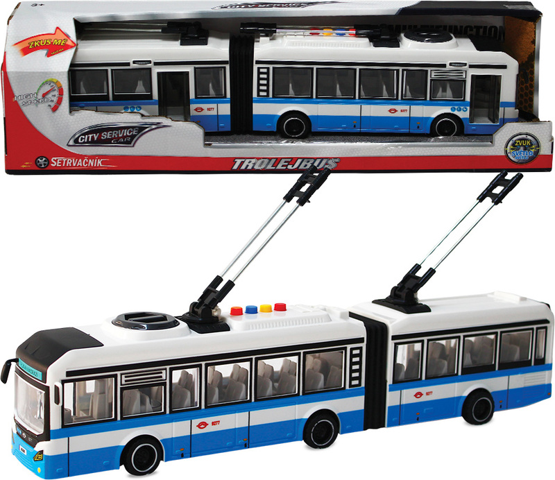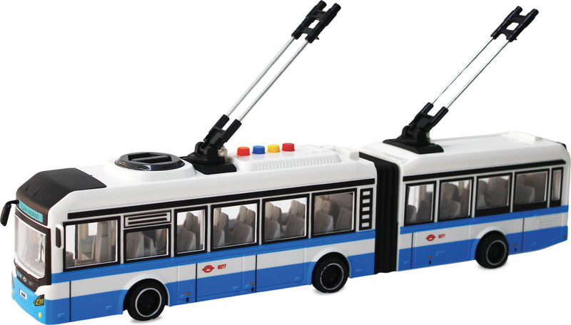 CITY SERVICE CAR - 1:16 Kĺbový trolejbus - modrý na zotrvačník so zvukmi