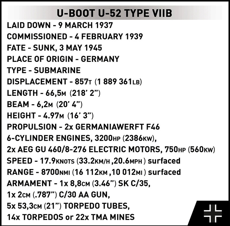 Kľúčové vlastnosti stavebnice nemeckej ponorky typu VIIB (U-52):