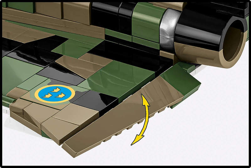 Pohyblivé prvky a výzbroj - Model má pohyblivé krídelká, kolesá a otvárací, detailný kokpit. Tieto prvky zvyšujú interaktivitu modelu a umožňujú vám znovu vytvoriť manévre stíhačky, čo dodáva dynamiku a robí ho „živším“. Sada obsahuje dva detailné kontajnery na kazetové bomby Bombkapsel 90, ktoré obsahujú 72 náloží.