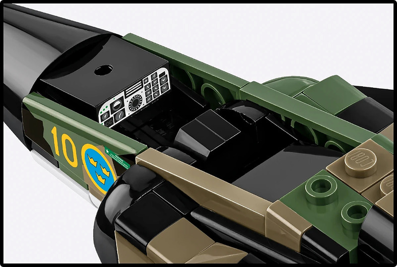 911 kociek - Sada obsahuje vysokokvalitné prvky, ktoré umožňujú presnú reprodukciu dizajnu Viggenu v tvare „kačice“, od charakteristických krídel a vybavenia kokpitu až po realistickú výzbroj.