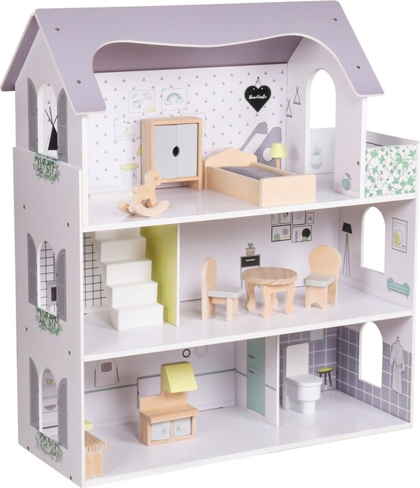 Domček je dodávaný s 10 kusmi nábytku, ktoré deťom umožňujú vytvárať si vlastné príbehy, scény a svety podľa svojej fantázie. Každý detail je navrhnutý tak, aby podporoval nezávislosť, fantáziu a zmysel pre estetiku – v duchu princípov Montessori.
