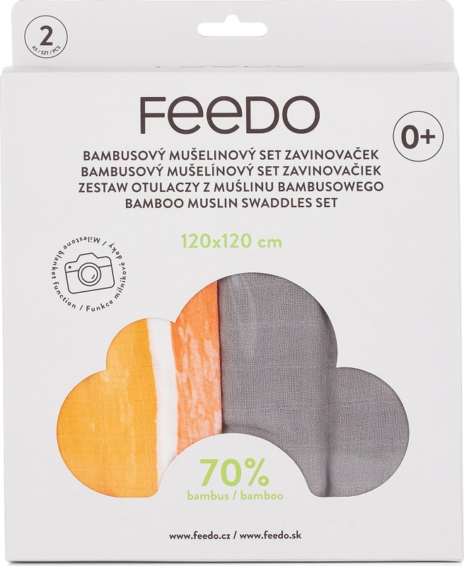 FEEDO Set zavinovačiek bambusový mušelínový 2 ks, 120x120 cm