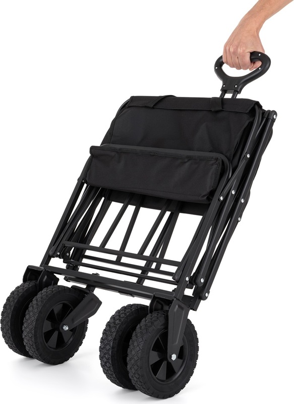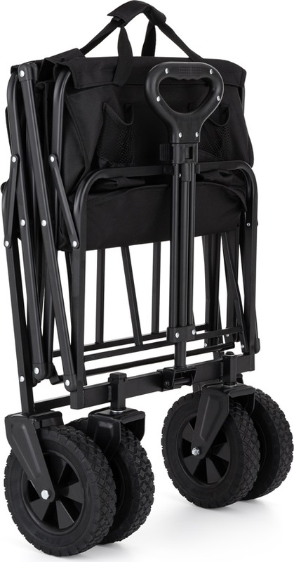 Tento vozík je navrhnutý tak, aby vám ušetril čas a energiu. Vďaka svojej priestrannej konštrukcii s rozmermi 91.5 x 49 x 75.6 cm ponúka dostatok miesta pre všetky vaše veci, pričom zložený do kompaktného rozmeru 57 x 20 x 77.5 cm sa ľahko zmestí do kufra auta alebo skrytého rohu domácnosti, či garáže.