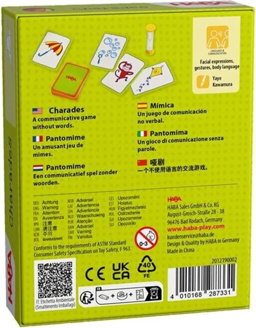 HABA Pantomíma je zábavná kartová hra, v ktorej si deti môžu vyskúšať svoje schopnosti napodobňovania.