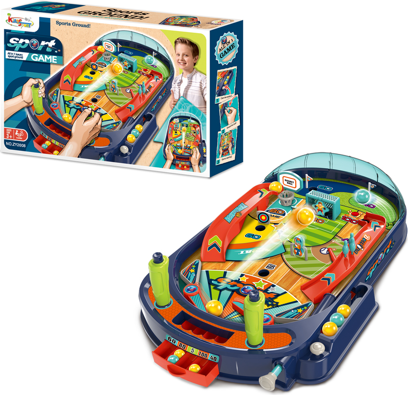Pinball SPORT GAME prináša deťom skvelú kombináciu akcie, zručnosti a súťaživosti. Ide o modernú verziu klasického pinballu, ktorá zaujme farebným dizajnom, pohyblivými prvkami a rôznymi spôsobmi, ako získať body. Deti si môžu vyskúšať svoju presnosť, rýchle reakcie a šikovnosť pri odpálení guličky, zatiaľ čo sledujú, ako prechádza hracou dráhou plnou prekážok, odrazových plôch a bonusových zón. Hra je navrhnutá pre jednoduché ovládanie, aby si ju naplno užili mladší aj starší hráči. Vďaka mechanickému spúšťaču, páčkam a farebnému hernému poľu poskytuje zábavu na dlhé hodiny.