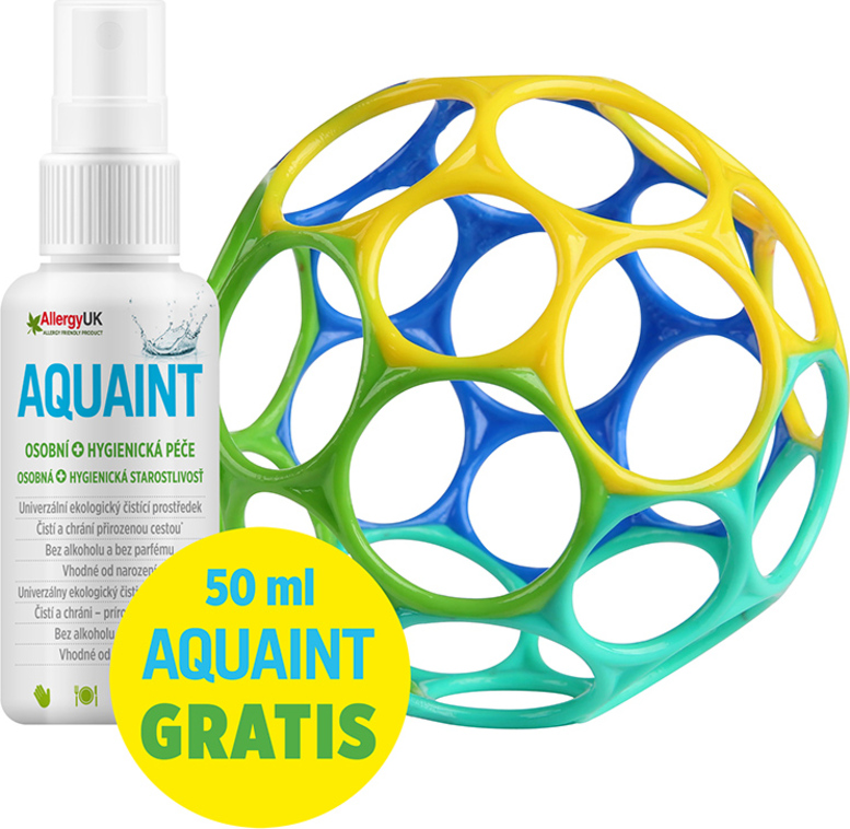 Aquaint je univerzálna ekologická čistiaca voda, ktorá je taká bezpečná, že ju možno použiť na pokožku, ruky aj v okolí úst dieťatka už od narodenia. Neobsahuje alkohol, parfémy ani žiadne konzervačné látky – po použití na povrchu zostáva len čistá voda. Je ideálnym spoločníkom na očistenie hračiek Oball, cumlíkov či rúk pred jedlom.