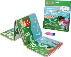 Predstavujeme Magické maľovanie vodou Víly a jednorožce– očarujúca zábava na každé dobrodružstvo!Pripravte sa preskúmať svet víl a jednorožcov s našou sadou Magické maľovanie vodou Víly a jednorožce! Stačí naplniť vodné pero a nechať deti odhaľovať úchvatné scény plné jednorožcov, víl a skrytých čísiel – všetko jedným ťahom štetca. Bez neporiadku a opakovane použiteľné, toto kúzelné set rýchlo schne a malých umelcov pripravuje na ďalšie maľovanie znova a znova!S 7 sklápacími scénami je táto opakovane použiteľná sada ideálna na inšpiráciu malých paleontológov, pomáha im pri nácviku počítania, rozvoji jemnej motoriky a podporuje samostatnú hru. Perfektná na cesty autom, lety, návštevy kaviarní alebo pokojné popoludnie doma!Súčasť našej kolekcie Create on the Go, tento kompaktný, bezneporiadkový set je ideálnym cestovným spoločníkom pre všetky deti, ktoré milujú dinosaury!Súčasť našej kolekcie Create on the Go, tento kompaktný a cestovateľsky priateľský set prináša dávku kreatívnej zábavy kamkoľvek idete! Tento set obsahuje:•  1 sklápacia nepremokavá knižka•  7 ilustrovaných scén na maľovanie•  1 dopĺňateľné vodné pero•  Veľkosť po zložení: 20 cm V × 20 cm Š × 2 cm H•  Veľkosť po rozložení: 80 cm Upozornenie: Nevhodné pre deti do 3 rokov. Obsahuje malé časti. Riziko udusenia. Odstráňte obalový materiál predtým ako dáte hračku dieťaťu. Informácie o výrobcovi: My Creative Box11 Milla WayAltona North, VIC 3018Australia  Telefón: +61 401 347 852Email: support@mycreativebox.com.au