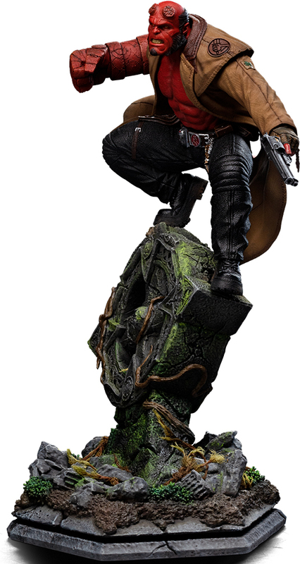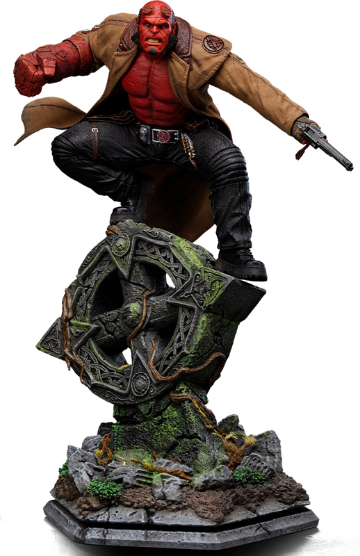 Figúrka Hellboy – Hellboy 2 – Art Scale 1/10 od Iron Studios zobrazuje obrovského červeného agenta B.P.R.D. balansujúceho na náhrobnom kríži starého cintorína. V ľavej ruke drží svoju veľkú šesťrannú brokovnicu Big Baby a pravá Ruka skazy – masívna rukavica z tuhého kameňa – je zovretá do päste, pripravená udrieť akéhokoľvek nadprirodzeného nepriateľa. Figúrka je precízne spracovaná s verným zobrazením kostýmu, trenčkotu, opasku a doplnkov, pričom realisticky zachytáva podobu herca Rona Perlmana. Ide o prvú figúrku démonického hrdinu v mierke 1/10 od Iron Studios, inšpirovanú filmom Hellboy II: The Golden Army (2008) v réžii Guillerma del Tora.