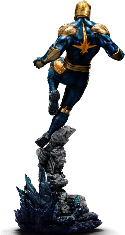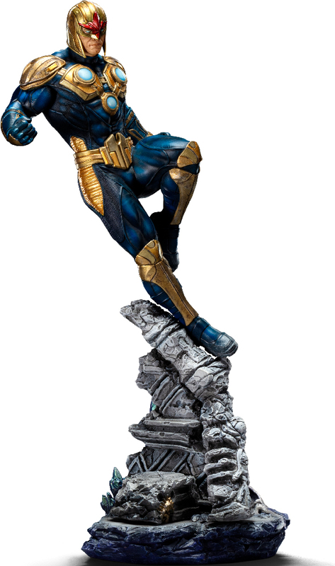 Figúrka Nova – Infinity Gauntlet Diorama – Deluxe Art Scale 1/10 od Iron Studios zobrazuje vesmírneho hrdinu známeho ako Human Rocket – šampióna Xandaru a Zeme – prvýkrát v produkcii Iron Studios. Nova sa vznáša nad troskami skál so zaostrenými kameňmi a vytesanými lebkami na emblematickom bojisku za hranicami času a priestoru, uprostred ruín chrámu postaveného na počesť Lady Death. Oblečený je v upravenom tmavomodro-zlatom uniforme Centurion Prime so zovretými päsťami nabitými energiou. Postavil sa po boku veľkých hrdinov, aby čelil titanovi Thanosovi a jeho Rukavici nekonečna. Postava Novu debutovala v komikse The Man Called Nova #1 od Marva Wolfmana a Johna Buscemu v roku 1976.