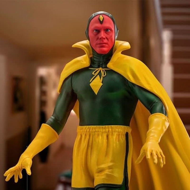 Figúrka WandaVision – Vision Halloween Version – Art Scale 1/10 od Iron Studios zobrazuje obľúbeného syntezoida Visiona v jeho ikonickom halloweenskom kostýme z populárneho seriálu WandaVision. Figúrka je precízne vysocháraná a ručne maľovaná, pričom každý detail presne reprodukuje podobu postavy zo seriálu.