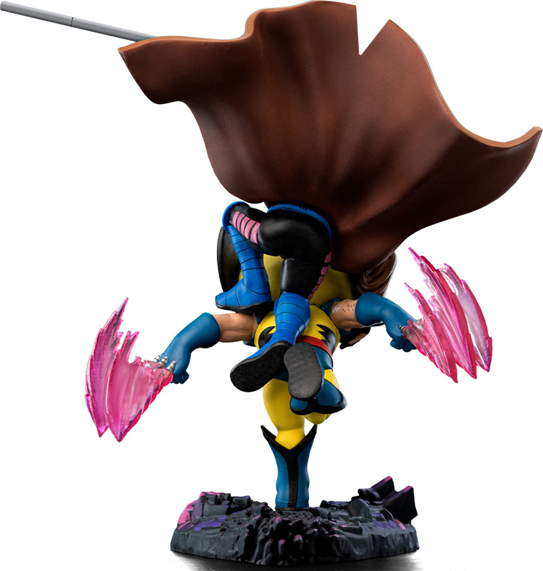 Figúrka Gambit & Wolverine – X-Men '97 – Special Size MiniCo od Iron Studios zachytáva ikonické duo mutantov X-Men v akcii na skalnatom a štrkovom teréne. Wolverine sa vrhá vpred s rozpaženými rukami a pazúrmi prerezávajúcimi vzduch, zatiaľ čo Gambit mu skáče z chrbta, drží svoj vysúvací Bojutsu staff a jeho trenčkot sa vzdúva vo vzduchu ako plášť. Ide o prvé vydanie tohto dua vo väčšej veľkosti v štylizovanom formáte MiniCo, inšpirované populárnym animovaným seriálom X-Men '97 na Disney+.