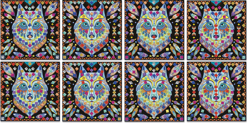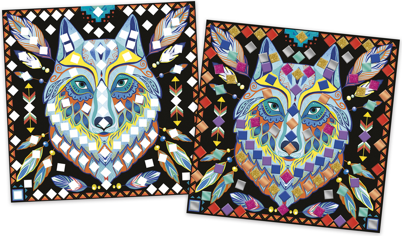 Táto sada obsahuje 8 dosiek (20 x 20 cm) - iba 1 dizajn, 24 malých listov mozaiky (6,5 x 6,5 cm) v 8 farbách (matná, metalická a trblietavá) a 1 brožúrku s návodom a niekoľkými príkladmi. Táto aktivita pomáha rozvíjať kreativitu a trpezlivosť.