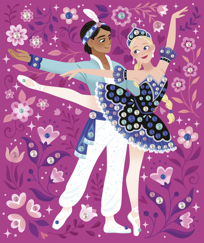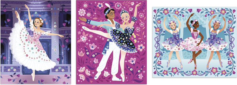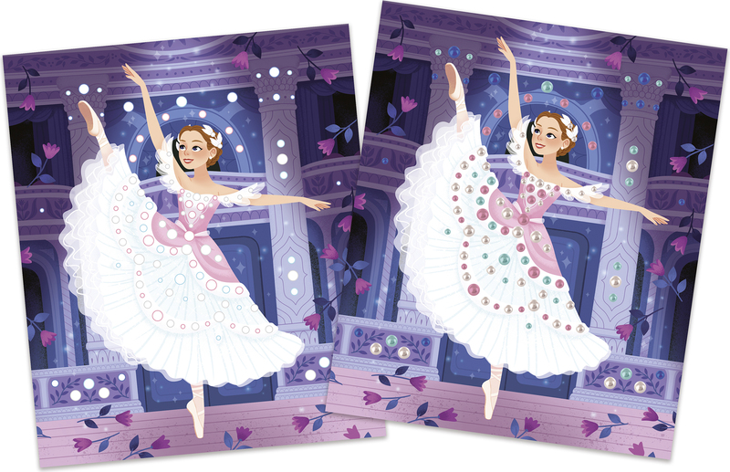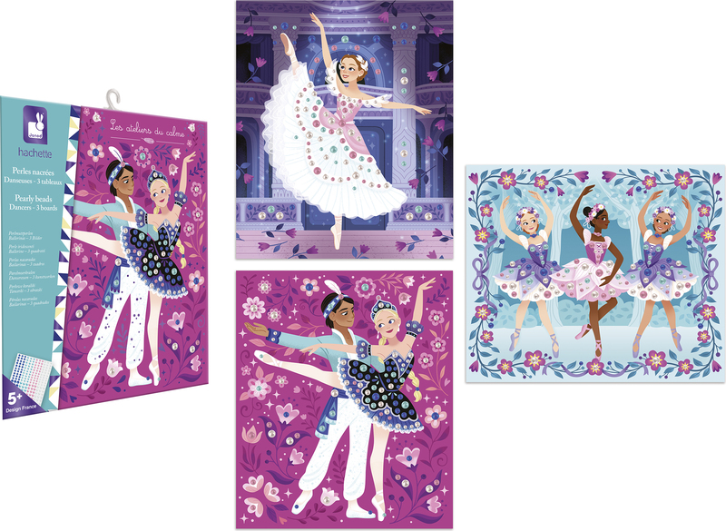 Tancujte! Táto sada na tvorenie sa dá použiť na ozdobenie 3 obrázkov tanečníc perleťovými korálkami.Obsahuje 3 obrázky, 360 dúhových lepivých polkorálok v 3 rôznych veľkostiach (4 mm, 6 mm a 8 mm) a 4 rôznych farbách (perleťovo biela, ružová, polnočná modrá a tyrkysová) a 1 leták s návrhmi a podrobnými pokynmi. Táto aktivita pomáha rozvíjať trpezlivosť a kreativitu.