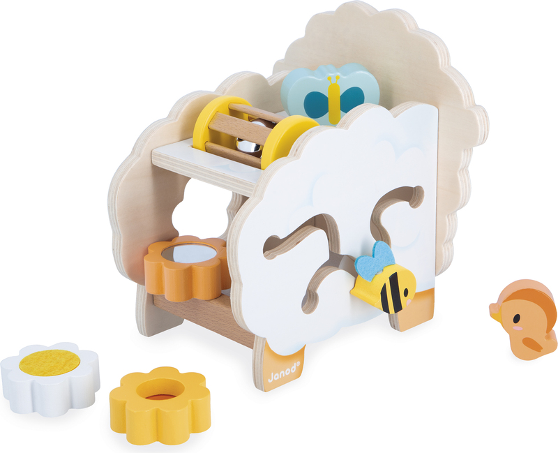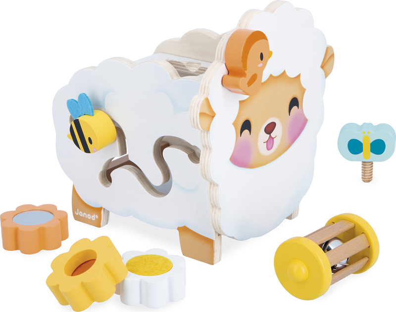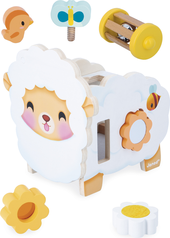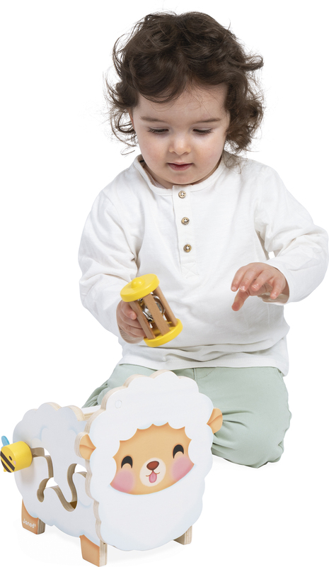 Janod Farma Drevená motorická hračka Ovečka s mnohými aktivitami
