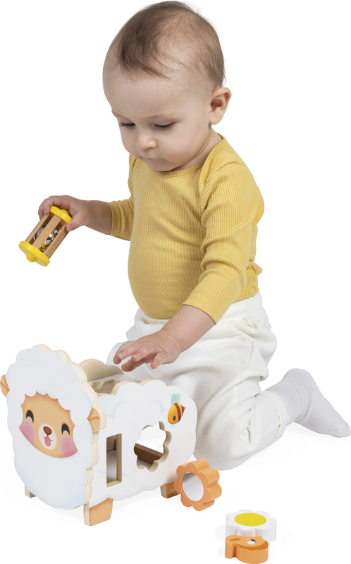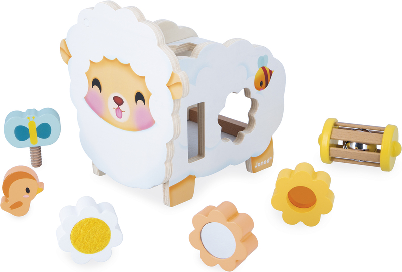 Predstavujeme veľmi roztomilú ovečku Janod! Dodáva sa so 6 doplnkami, ktoré sa dajú uložiť na ovečke a v nej. Vtáčik je magnetický a sedí na hlave.
