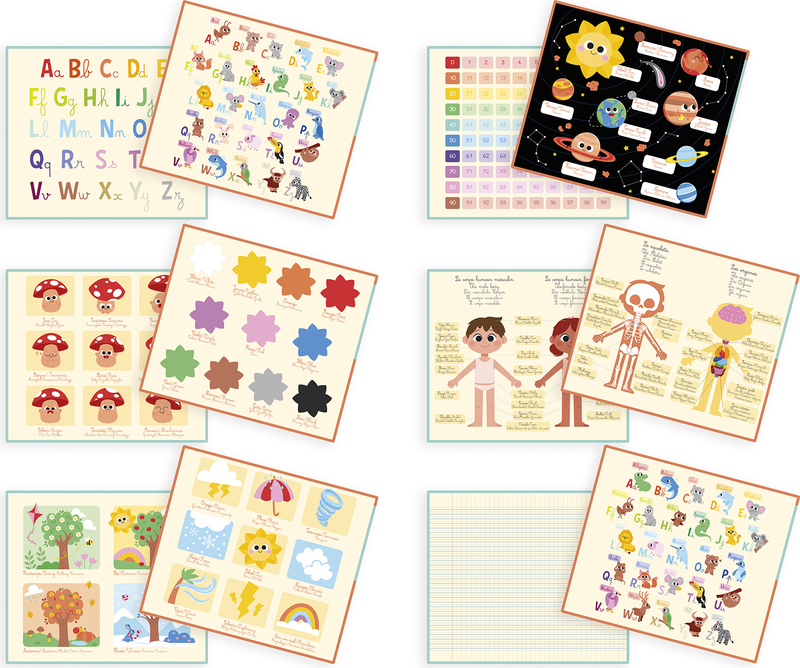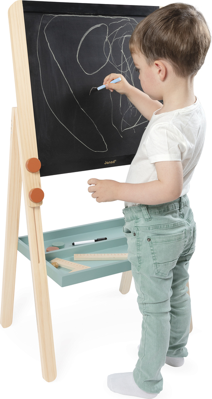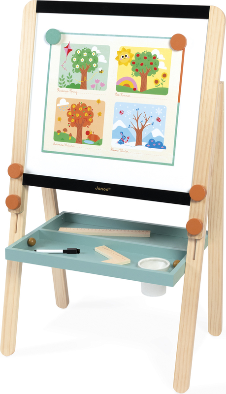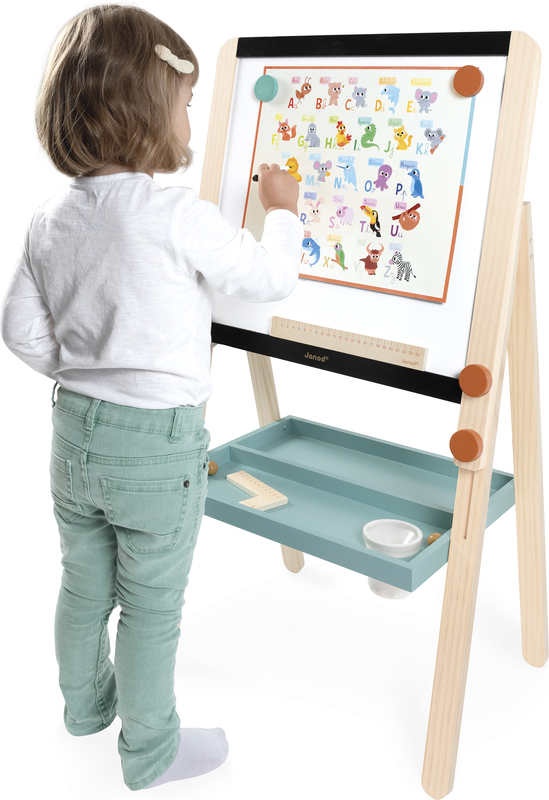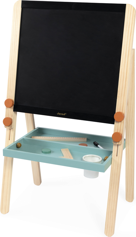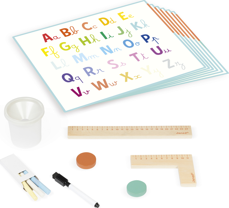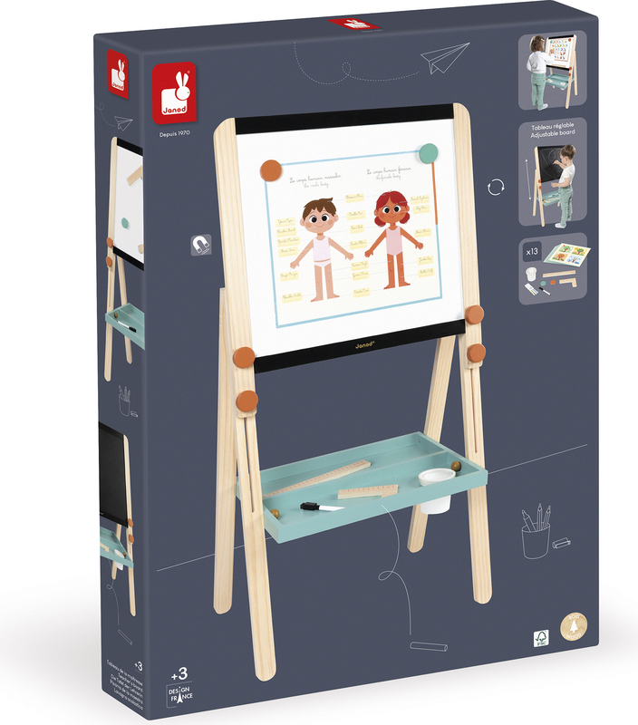 Škola doma... zábavná a farebná verzia! Táto skvelá nastaviteľná drevená tabuľa, navrhnutá tak, aby rástla s vaším dieťaťom, má dve strany: čiernu bridlicovú a bielu stranu, čo poskytuje veľa možností!Obsahuje 3 farebné kriedy, 1 fixku s gumou, 1 pravítko a 1 uholník. Súčasťou balenia sú aj dva magnety na upevnenie dvanástich vzdelávacích plagátov o ľudskom tele, vesmíre a ročných obdobiach a jeden linajkový na precvičovanie písania. Pohodlné! Plagáty sú zalaminované, takže môžete písať, mazať a začínať odznova toľkokrát, koľkokrát chcete!