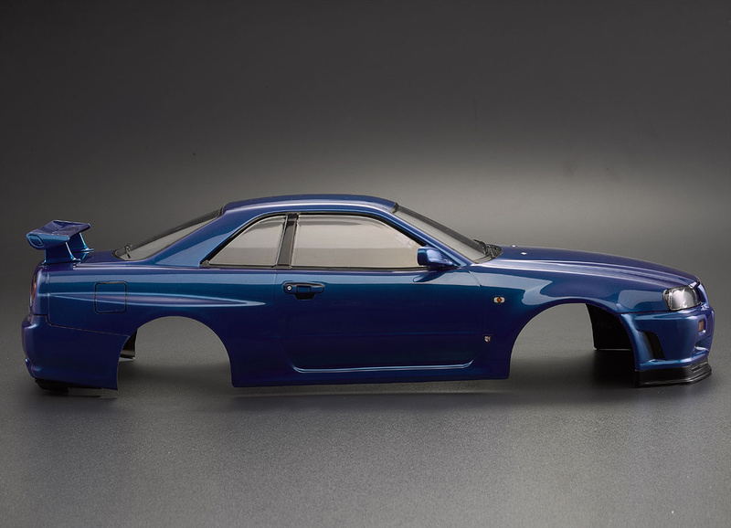 Karoséria Nissan Skyline R34 v modrej farbe je už zostavená. Len otvory na pripevnenie karosérie je nutné dorobiť podľa potreby. Aerodynamické a elegantné spracovanie karosérie auta vás určite nesklame.