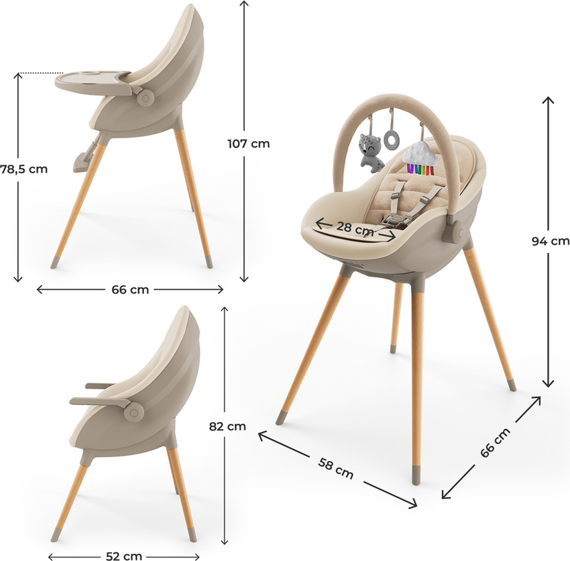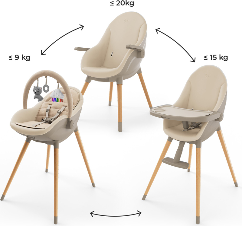 - Funkcia 3v1: lehátko, jedálenská stolička, stolička pre staršie dieťa (do 20 kg)