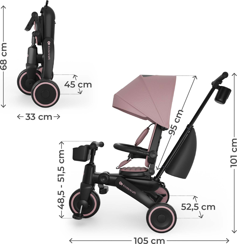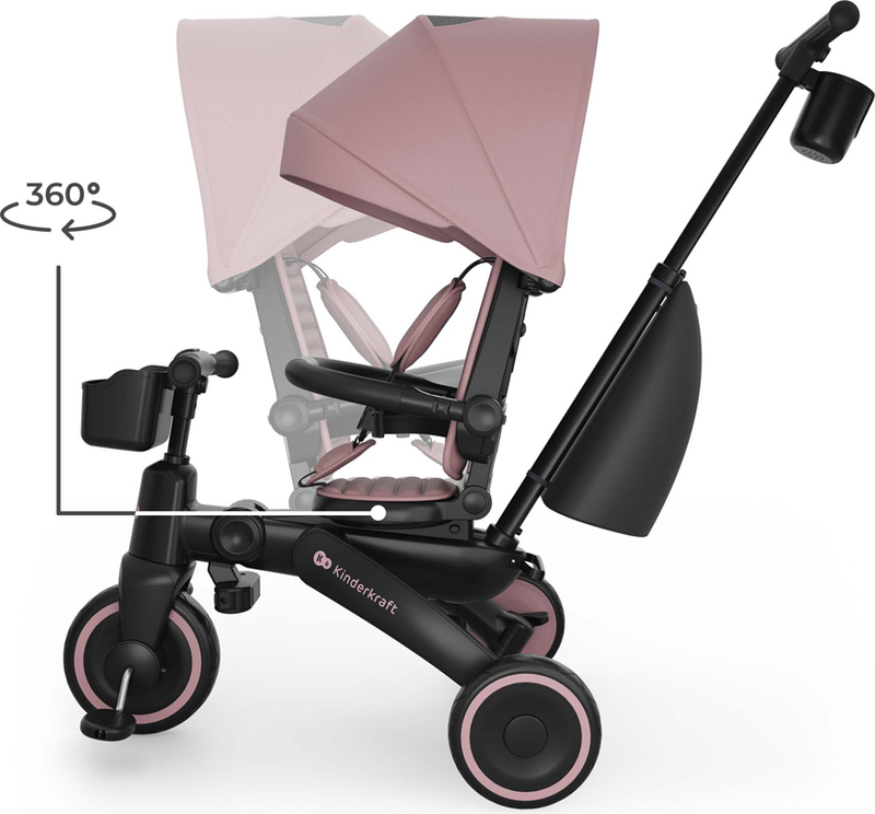 Kinderkraft JAZZ 3 kombinuje trojkolku vedenú rodičom s fázou učenia samostatnej jazdy. Vďaka 6 režimom používania sa model prispôsobuje vývoju dieťaťa - od jazdy proti smeru s kontrolou rodiča, cez samostatné šliapanie až po režim odrážadla.