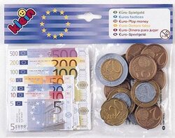 Euro bankovky, mince a platobná karta, balené v sáčku.