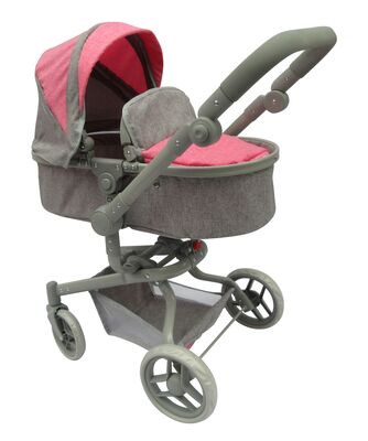 Kočík 2v1-ružovo/sivý, ideálny pre tvoju obľúbenú bábiku. kvalitné prevedenie - vyzerá skoro ako naozajstný!