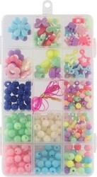 V tejto sade nájdete rôzne druhy, tvary a farby plastových korálikov.
