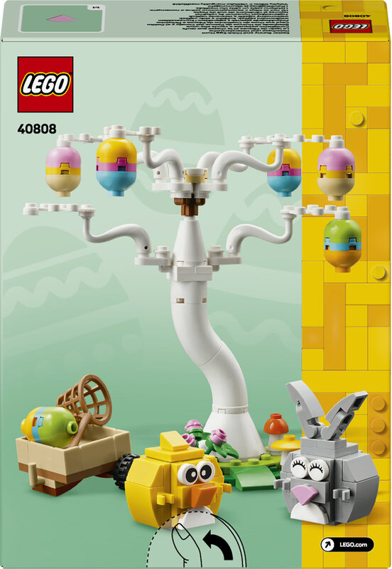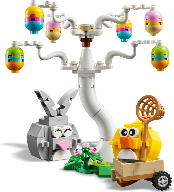 Stavebnica bude zábavným veľkonočným darčekom pre dospelých, deti a milovníkov zvierat a ideálnym modelom pre celú rodinu či priateľov. Postavte si strom, vagón, hračkárskeho vtáčika a králika LEGO a potom vytvorte a pripevnite pestrofarebné vajíčka na konáre stromu, aby ich zvieratká našli. Pomôžte kuriatku a veľkonočnému zajačikovi pozbierať vajíčka pomocou siete a uložiť ich do vozíka.