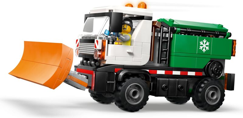 - ČO JE V BALENÍ – Obsahuje všetko potrebné na zostavenie realistického modelu snežného pluhu s gumovými pneumatikami, predným pluhom a funkciou sypania soli, no nechýba ani minifigúrka šoféra