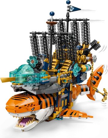 - HRAČKÁRSKY ŽRALOČÍ TANK – Deti si môžu postaviť žraloka v režime žraločieho tanku, ktorý sa dá šoférovať, s otváracou papuľou, pohyblivým chvostom a dvoma bočnými modulmi s vystreľovačmi, úložným priestorom a miestom pre minifigúrku pilota