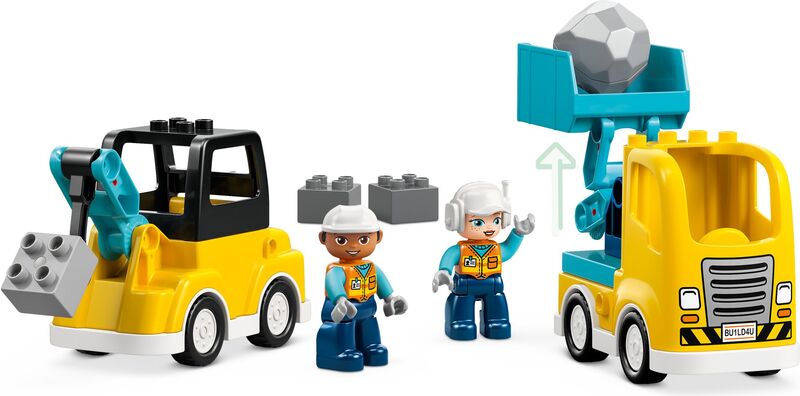 - 1 STAVEBNICA, 6 HRAČKÁRSKYCH VOZIDIEL – Z kociek stavebniceLEGO® DUPLO® pre malé deti sa dajú zostaviť 2 odťahovacie vozidlá s rôznymi hákmi, nakladač, zdvihák, nákladiak so sklápačkou alebo hračkársky bager s pohyblivým ramenom