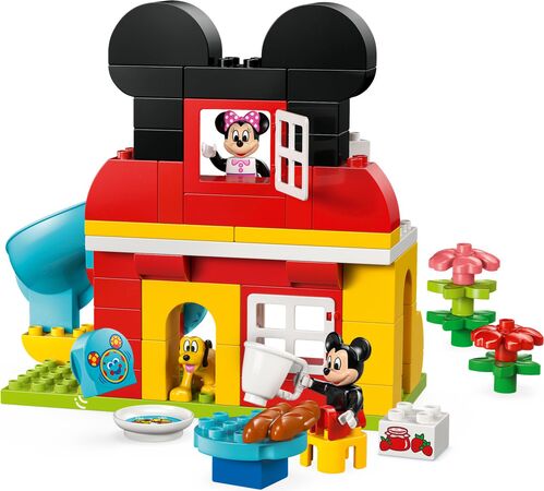 OBĽÚBENCI DISNEY – Model domčeka z kociek obsahuje postavičky LEGO® DUPLO® - Disney Mickey Mousea, Myšky Minnie, Pluta a kocku s obrázkom superpočítača Toodlesa pre hry na scénky podľa rozprávky Disney Junior