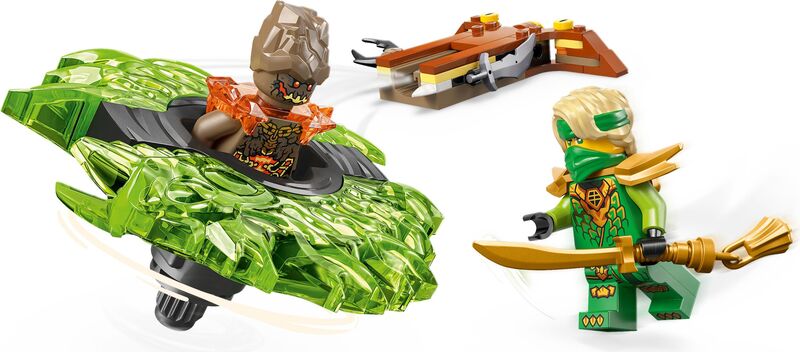 HRAČKA NA SÚBOJE – Chlapci a dievčatá od 6 rokov sa môžu zahrať na scénky zo 4. série televízneho seriálu NINJAGO® Dragons Rising s touto nindžovskou hračkou LEGO® NINJAGO Lloyd vs. spinner pozemskej príšery (71850)