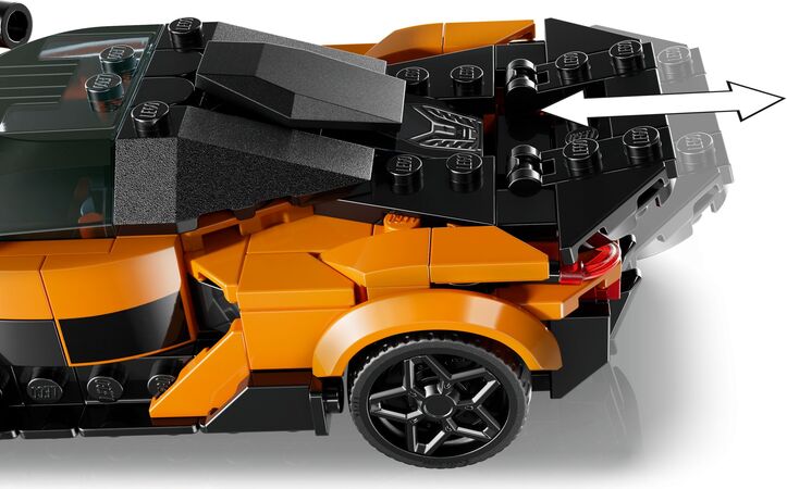 Model vozidla McLaren má nastaviteľné zadné krídlo na jazdu alebo preteky, zadný motor, kokpit, informačno-zábavnú obrazovku a vzduchové prívody po bokoch a kapote. K hračkárskemu pretekárskemu autu patrí aj minifigúrka jazdca v kombinéze McLaren s prilbou, parochňou a francúzskym kľúčom, ktorý sa dá použiť aj na lepenie nálepiek a oddeľovanie kociek. Stavebnice LEGO® Speed Champions potešia ako skvelý darček pre deti a môžu si s nimi postaviť repliky niektorých z najikonickejších vozidiel na svete. Pomocou aplikácie LEGO Builder môžu vytvárať každý model s istotou – stavebnicu v nej dokážu približovať, otáčať v 3D prostredí a sledovať svoj pokrok v rámci prehľadného digitálneho návodu. Stavebnica obsahuje 287 dielikov.