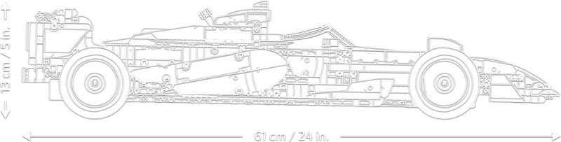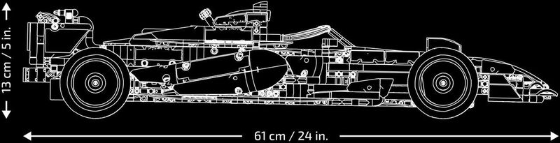 - ROZMERY – Stavebnica z 1 675 dielikov s autom LEGO F1 meria vyše 13 cm na výšku, 61 cm na dĺžku a 25 cm na šírku