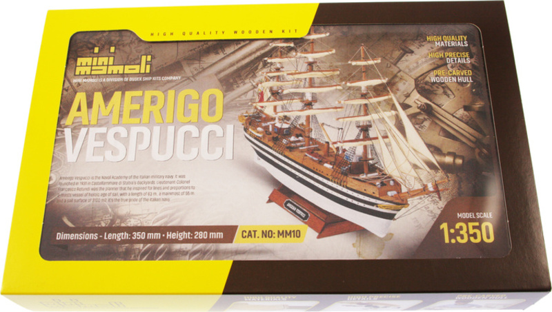 Model lode Amerigo Vespucci, z radu Mini Mamoli, v mierke 1:350. Model vhodný pre začínajúcich modelárov. Stavebnica obsahuje vyrezané drevené diely, kovové diely, stojan a návod. Amerigo Vespucci je výcviková loď talianskeho námorníctva. Meno získala po talianskom námorníkovi, po ktorom získal meno aj kontinent - Amerika.