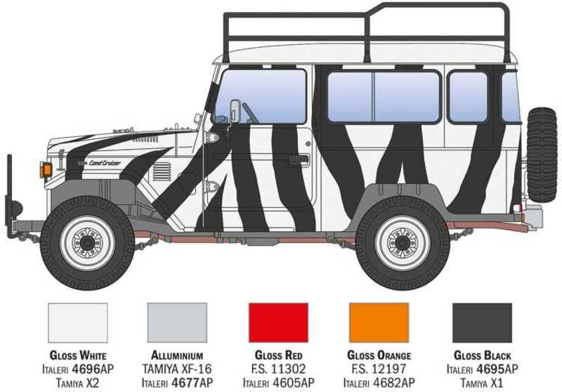 Model auta ke slepení. Velikost: 1:24; 16,5 cm.Toyota Land Cruiser je měřítkem v automobilové výrobě. Renomovanou rodinu terénních vozů vyvinula japonská společnost Toyota Motor Corporation v 50. letech minulého století. Je to ve skutečnosti nejdéle fungující štítek společnosti ze „Země vycházejícího slunce“ a neustále se vyvíjel v designu, motorech a technologických řešeních. Mezi nejikoničtějšími modely vyniká řada J-40 vyráběná od 60. do 80. let. Vyznačoval se klasickým a decentním designem a byl známý svou robustností a spolehlivostí. Byl k dispozici se třemi rozvory: krátký, střední (jako J-44, který dosáhl velkého komerčního úspěchu) a dlouhý. Dodával se s dieselovými nebo benzínovými motory v závislosti na cílových trzích. Verze „Safari“ s extrémnější výbavou a výbavami dále posílila sílu a spolehlivost vozidla za všech podmínek prostředí.